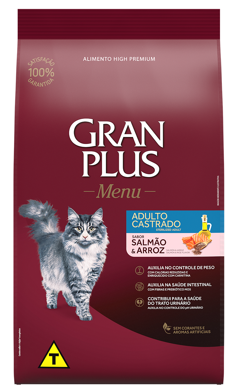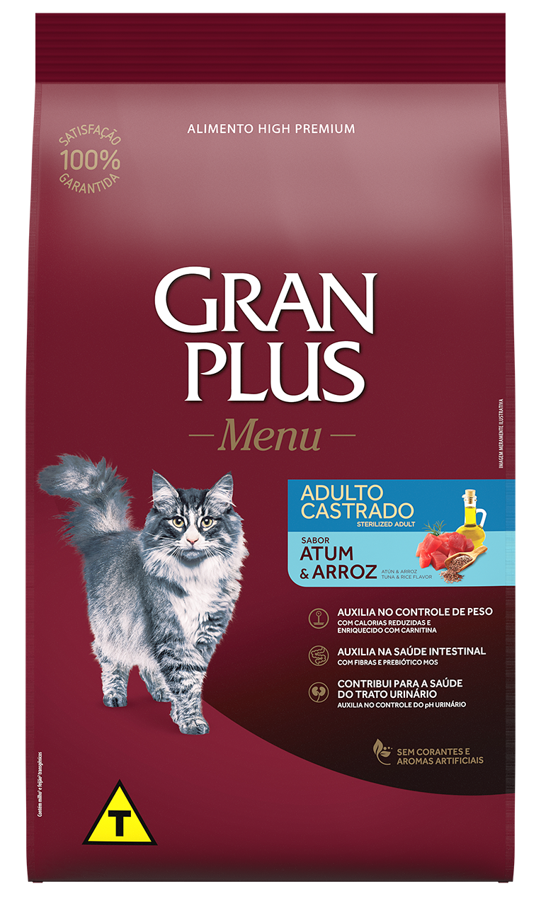 Em 2019Lançamento GranPlus Sabor Atum & Arroz para gatos castrados