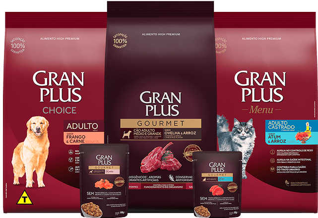 Lançamento em novembro de GranPlus Cães Sênior Sabor Frango & Cereais e GranPlus Gatos Castrados Sabor Salmão & Arroz;